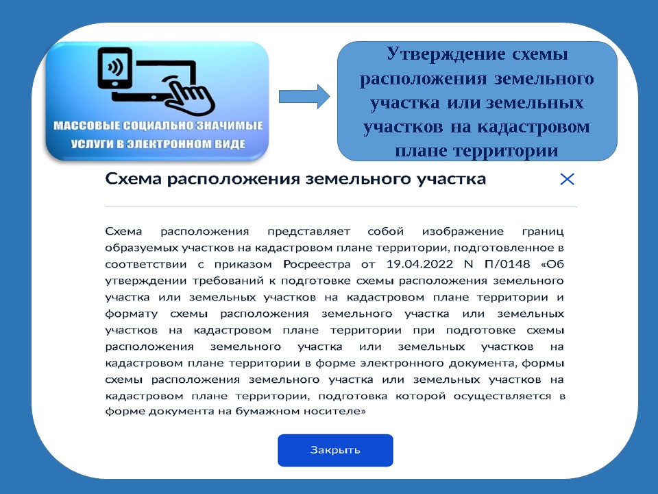 В перечень массовых социально значимых услуг Свердловской области включена государственная услуга по утверждению схем расположения земельных участков на кадастровом плане территории.Указанная услуга направлена на обеспечение возможности физических или юридических лиц инициировать образование земельных участков из земельных участков, находящихся в государственной или муниципальной собственности, в частности путем раздела или объединения земельных участков.