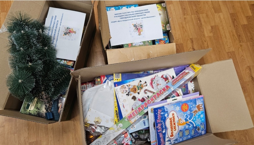 Сотрудники Мингосимущества Свердловской области и подведомственных организаций БТИ Свердловской области, Фонда имущества Свердловской области, Распорядительной дирекции Мингосимущества, ГБУ СО"Центр государственной кадастровой оценки" приняли активное участие в сборе новогодних подарков для детей Макеевки.
