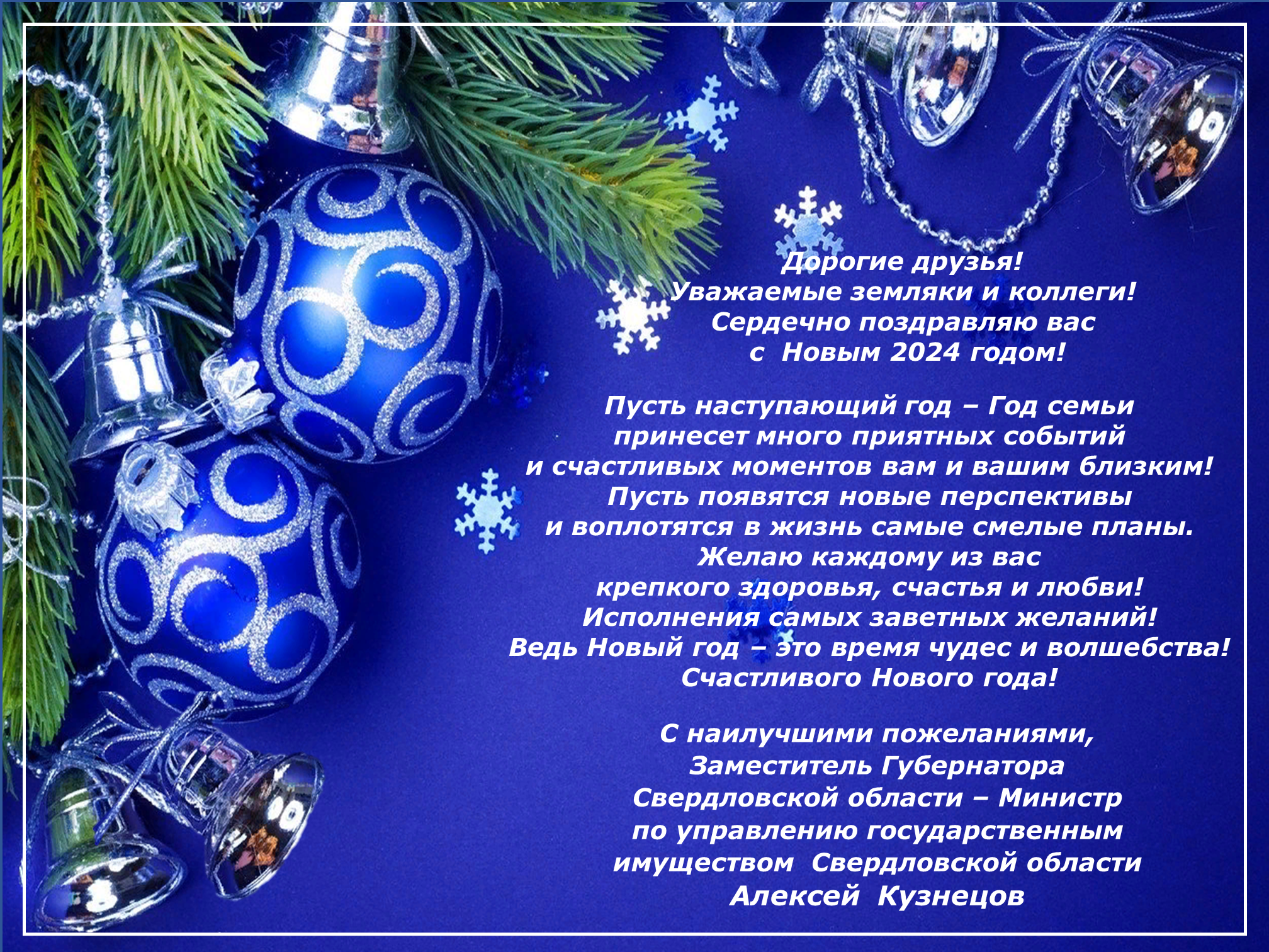 Поздравление Заместителя Губернатора Свердловской области – Министра по управлению государственным имуществом Свердловской области Алексея Кузнецова с Новым 2024 годом!