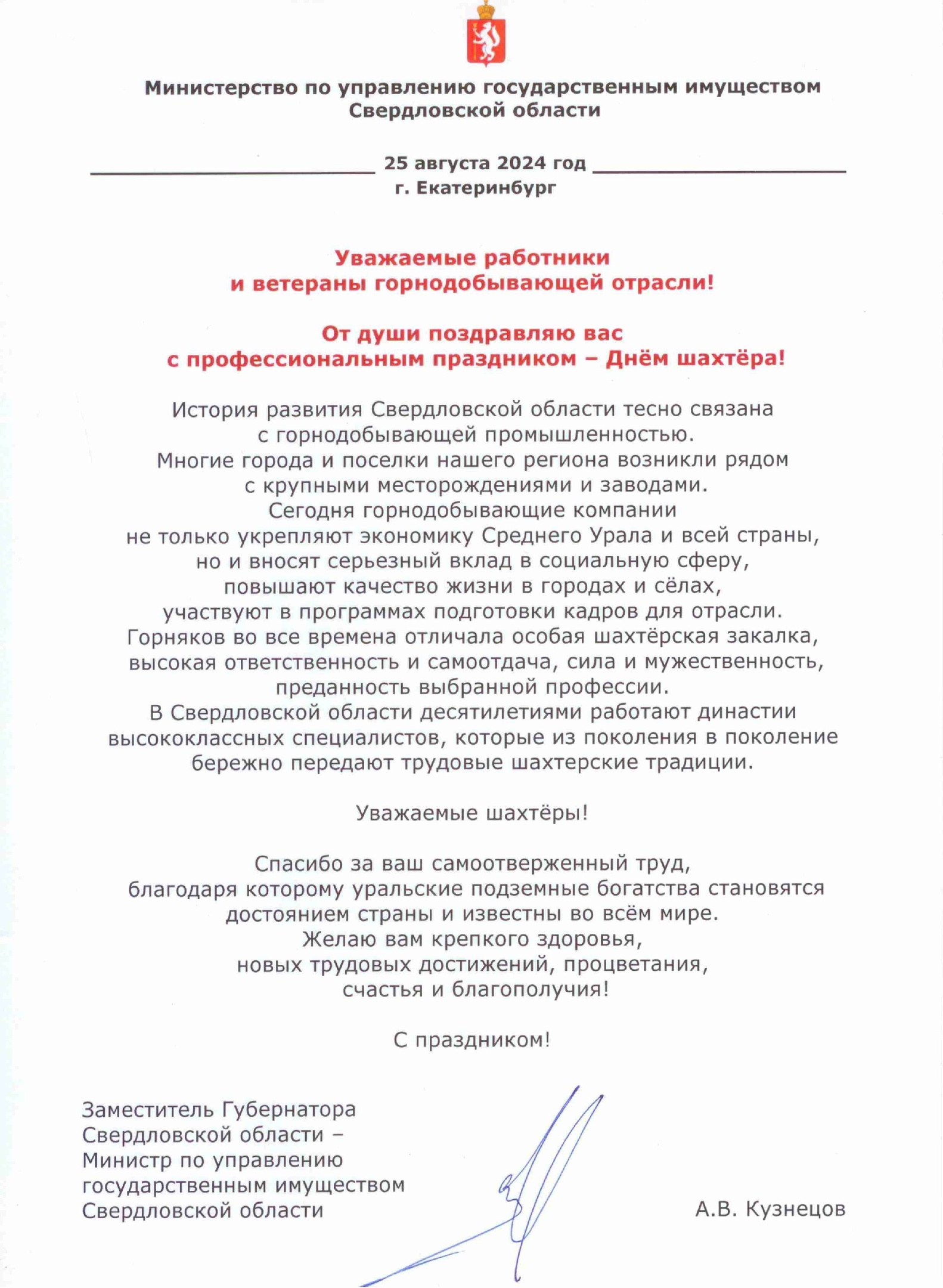 Поздравление Алексея Кузнецова с Днём шахтёра