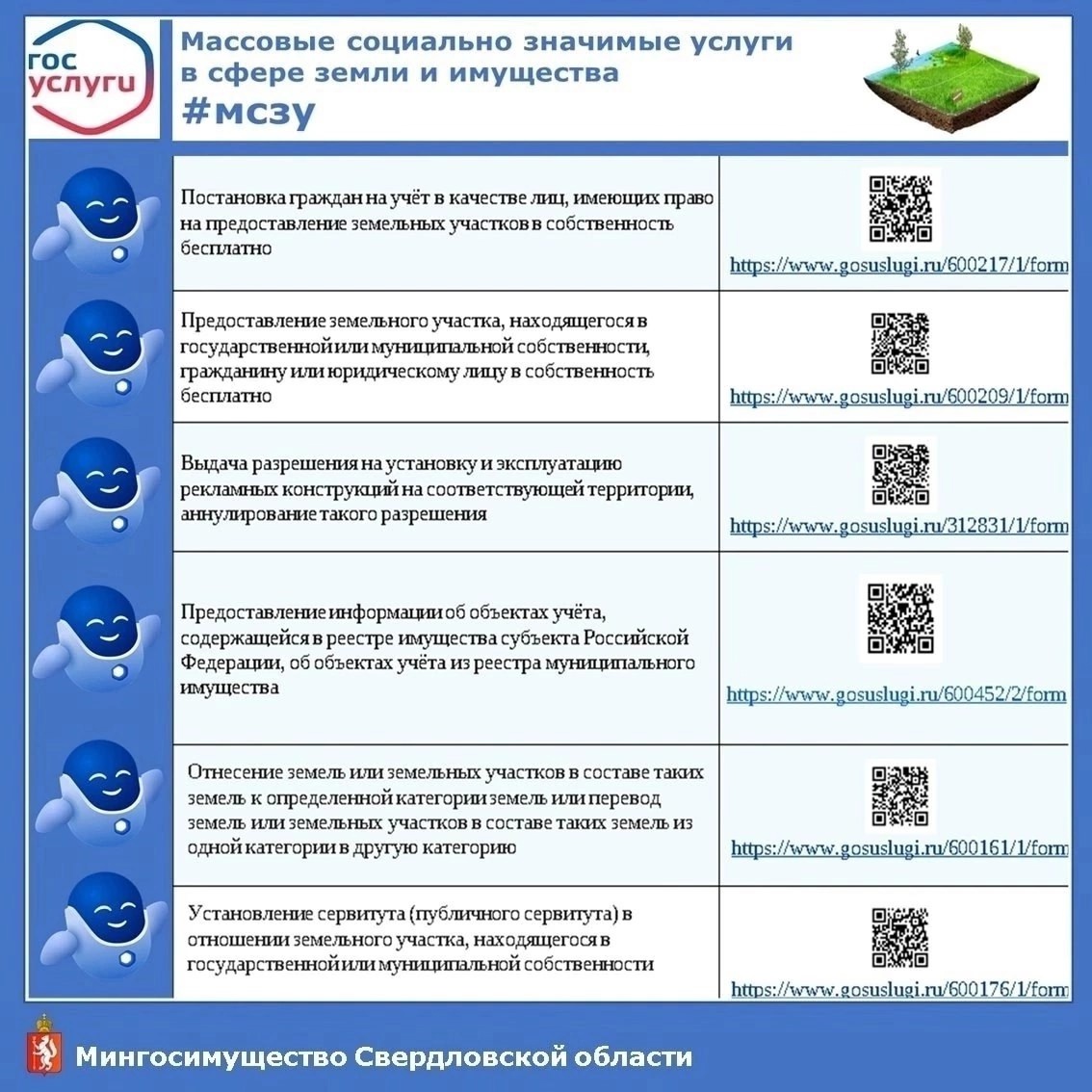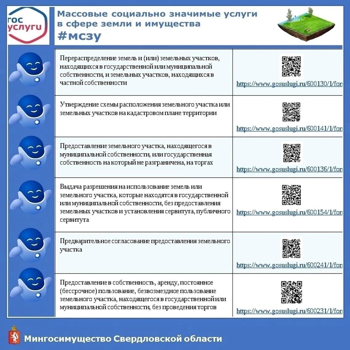 Проще простого. Закажите прямо сейчас госуслугу через портал Госуслуги.Мингосимущество Свердловской области предоставляет 12 массовых социально значимых услуг (МСЗУ) в электронном виде.